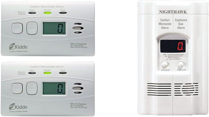 The Kidde Carbon Monoxide Detector with 10-Year Battery & Digital Display, model C3010D, is a carbon monoxide detector that uses electrochemical sensor technology to detect carbon monoxide. The CO detector is powered by a 10-year lithium battery that never needs replacing, plus protects during a power failure. The Kidde alarm is conveniently designed and portable enough for travel – simply install it on a wall or place it on a tabletop. When carbon monoxide is detected, an 85-decibel alarm will sound & a red LED will flash. A green LED indicates that the alarm is receiving power. And an amber LED indicates when it's time to replace the detector. The test-hush button allows you to test the battery operations as well as temporarily silence the low battery chirp warning. Plus, peak level memory records the last time carbon monoxide was detected or when the unit was last tested. Install a smoke detector & carbon monoxide detector on every level of your home and near bedrooms to help keep your family safe from fire & poisonous gas. UL Certified with a 10-year limited manufacturer's warranty.