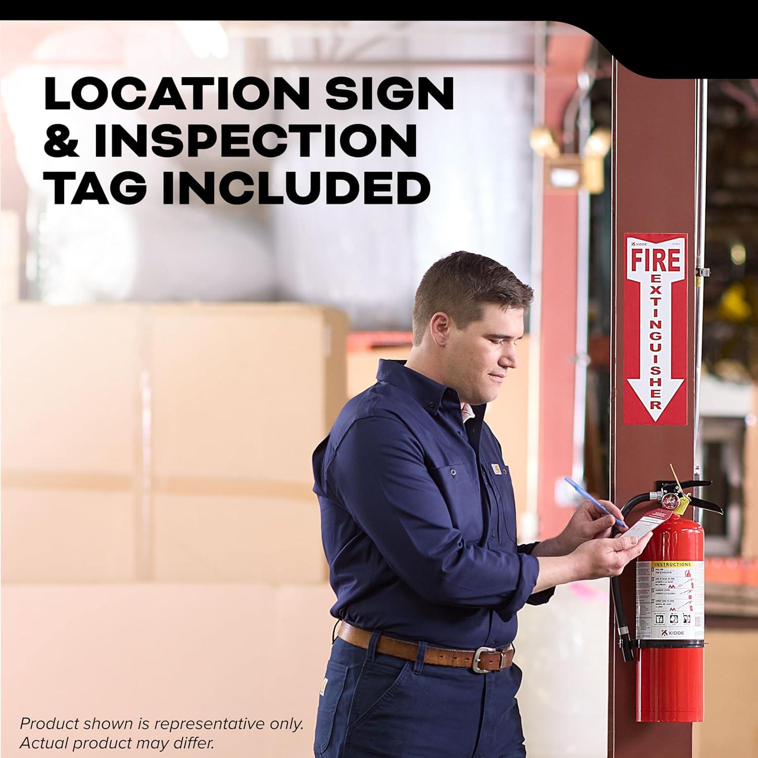Safeguard your property with the Kidde Commercial-Grade Fire Extinguisher for Office, Parking Garages, Rechargeable, 3A40BC, designed for commercial use to meet code compliance for larger areas and common fires involving wood, paper & textiles (Class A), flammable liquids and gases (Class B), and electrical equipment (Class C). Manufactured from durable, corrosion-resistant aluminum, the Kidde Pro fire extinguisher provides a discharge rate of 13-15 seconds, a range of 12-18 feet, and operating pressure of 195 PSI. The painted aluminum handle, aluminum cylinder, and metal valve are impact-resistant, and the easy-to-pull safety pin gives you quick access for simple operation. Designed to combat fire hazards using the PASS (Pull, Aim, Squeeze, Sweep) firefighting method, the multi-directional discharge hose allows you to fight fire from various angles. The metal wall hanger lets you mount the extinguisher in an easily accessible place so it’s always ready for an emergency. UL Listed. 6-year limited manufacturer's warranty. Note that the dry chemical agent in this fire extinguisher is non-toxic but may cause skin irritation. Place a Kidde fire extinguisher within easy reach where fires are more likely to start. *When compared to the Class A firefighting capability of a UL 1-A:10-B:C fire extinguisher.