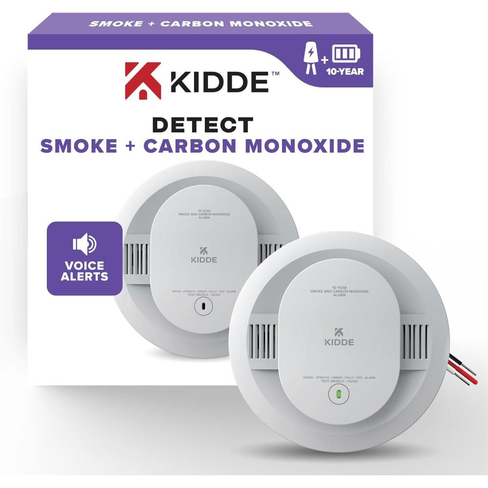 Experience the next level of fire safety with the Kidde Hardwired Smoke & Carbon Monoxide Detector, 10-Year Battery Backup, Voice Alerts, Interconnectable LED Warning Light Indicators, model 30CUA10-V. This smoke & CO detector has enhanced sensing technology that reduces false alarms often caused by cooking and sends fast alerts that help give your family more time to get out safely. To detect carbon monoxide, an electrochemical sensor is used. This alarm offers a modern 5-inch design ideal for all living spaces such as living rooms, hallways, kitchens, & bedrooms. Voice alerts clearly announce “Fire!” or “Warning Carbon Monoxide!” to help identify which hazard is detected. Comprehensively tested and designed to the latest UL standard for safety and reliability, the 5-inch smoke & CO alarm is powered by 120V AC wiring with a 10-year built-in lithium battery, so you never have to change a battery for the life of the detector (not a battery performance claim). In addition, it’s self-testing and easy to install with the included twist-and-click mounting bracket. Meets requirements of 9th Edition UL 217, UL 2034 4th Edition, FCC, and CSFM.