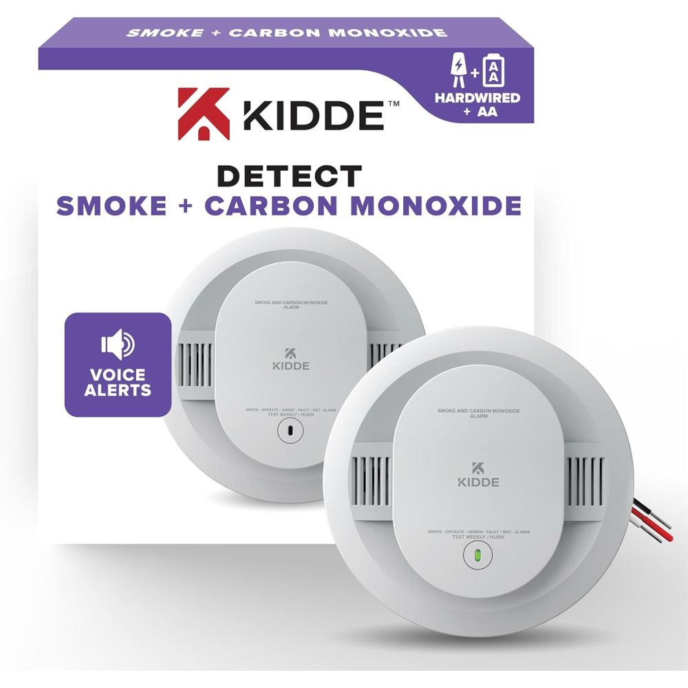 imageKidde Hardwired Smoke ampamp Carbon Monoxide Detector AA Battery Backup Voice Alerts Interconnectable LED Warning Light Indicators White1 Pack