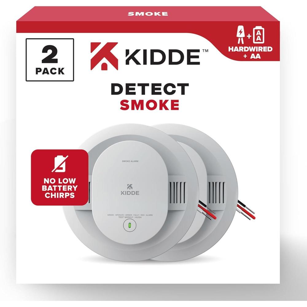 Kidde Hardwired Smoke Detector, AA Battery Backup, Interconnectable, LED Warning Light Indicators, 2 Pack(2 Pack)