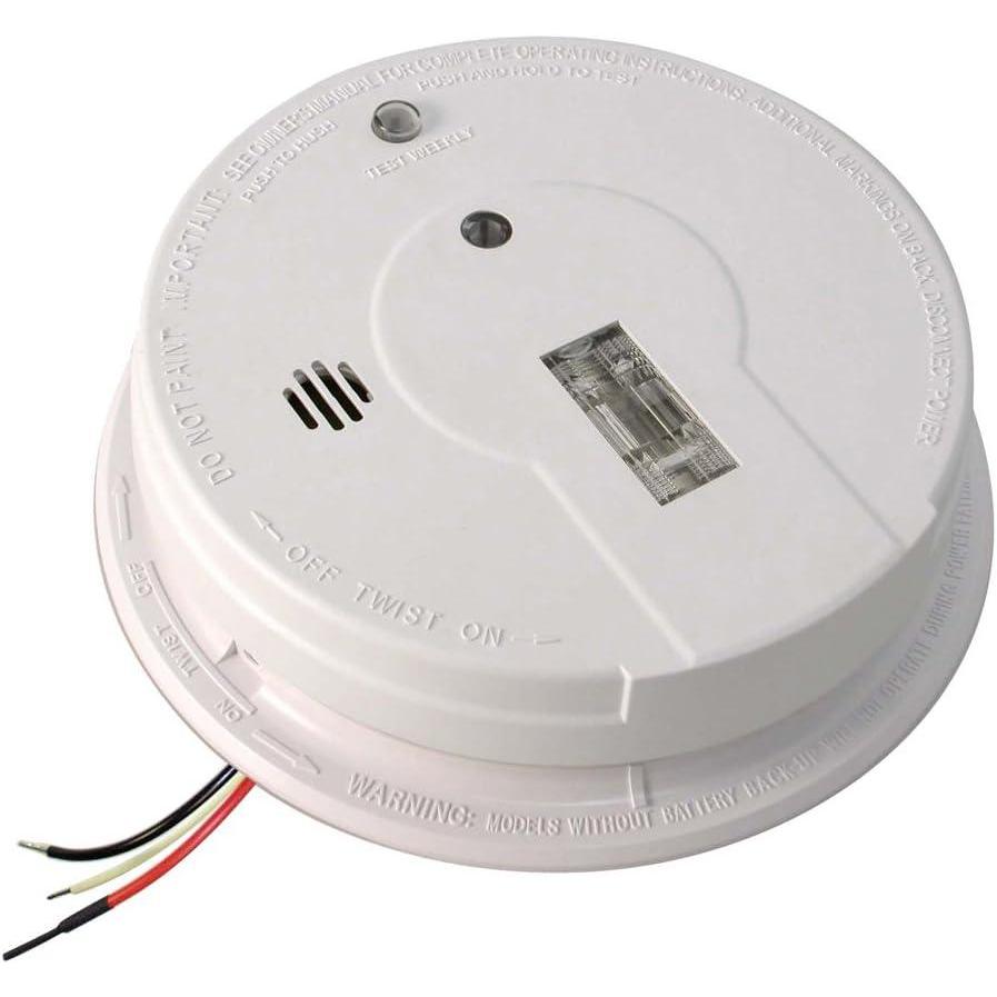 The AC-powered, hardwired Kidde i12080 ionization smoke alarm is designed to protect you and your family from the dangers of smoke and fire. This smoke alarm's trademarked hush feature allows you to silence nuisance alarms, while an indicator LED and test feature let you easily confirm that the alarm is working. This wire-in smoke detector also has a battery-backup feature (with included 9-volt battery) as well as a safety light that helps illuminate your path to safety. Kidde i12080 The Kidde i12080 is equipped with an integrated safety light. At a Glance i12080 Hardwire Smoke Alarm At a Glance: Ionization sensing technology detects invisible fire particles Battery backup for continuous protection in case of power outage (battery included) Safety light illuminates your path to safety Smart hush feature silences nuisance alarms Pre-stripped wiring harness with tinned strands 10-year limited warranty At a Glance Features The Kidde i12080 smoke alarm includes a safety light feature that provides 15 minutes of light when the alarm is sounding. It offers a tamper-resistant feature to deter vandalism or theft and a smart interconnect system that connects with up to 24 Kidde devices–including other smoke alarms plus carbon monoxide and heat alarms. The battery-backup feature (9-volt battery included) provides protection even during power outages, when many CO incidences occur. It has a large mounting base that helps protect surface paint from dirt and covers imperfections, and its pre-stripped wiring harness has an easy-off cap and tinned strands to increase conductivity. By pressing the hush button, you can easily and safely silence nuisance alarms caused by non-emergency situations, such as overcooked dinners. This feature desensitizes the alarm for approximately seven minutes. During this time, the alarm chirps every 30 to 40 seconds. If the smoke is too dense, the hush feature is overridden and the alarm still sounds, and the alarm automatically resets at the end of the seven minutes. This convenient safety measure eliminates the temptation to remove the alarm's battery, which creates an unsafe situation. The Kidde i12080 smoke alarm uses ionization sensing technology, which generally detects invisible fire particles (associated with flaming fires) sooner than photoelectric alarms. Photoelectric sensing alarms may detect visible particles (associated with smoldering fires) sooner than ionization alarms. Kidde recommends that both ionization and photoelectric smoke alarms be installed to insure maximum detection. What's in the Box One Kidde i12080 120V AC wire-in smoke alarm, one 9-volt battery, and operating and installation instructions. Kidde i12080