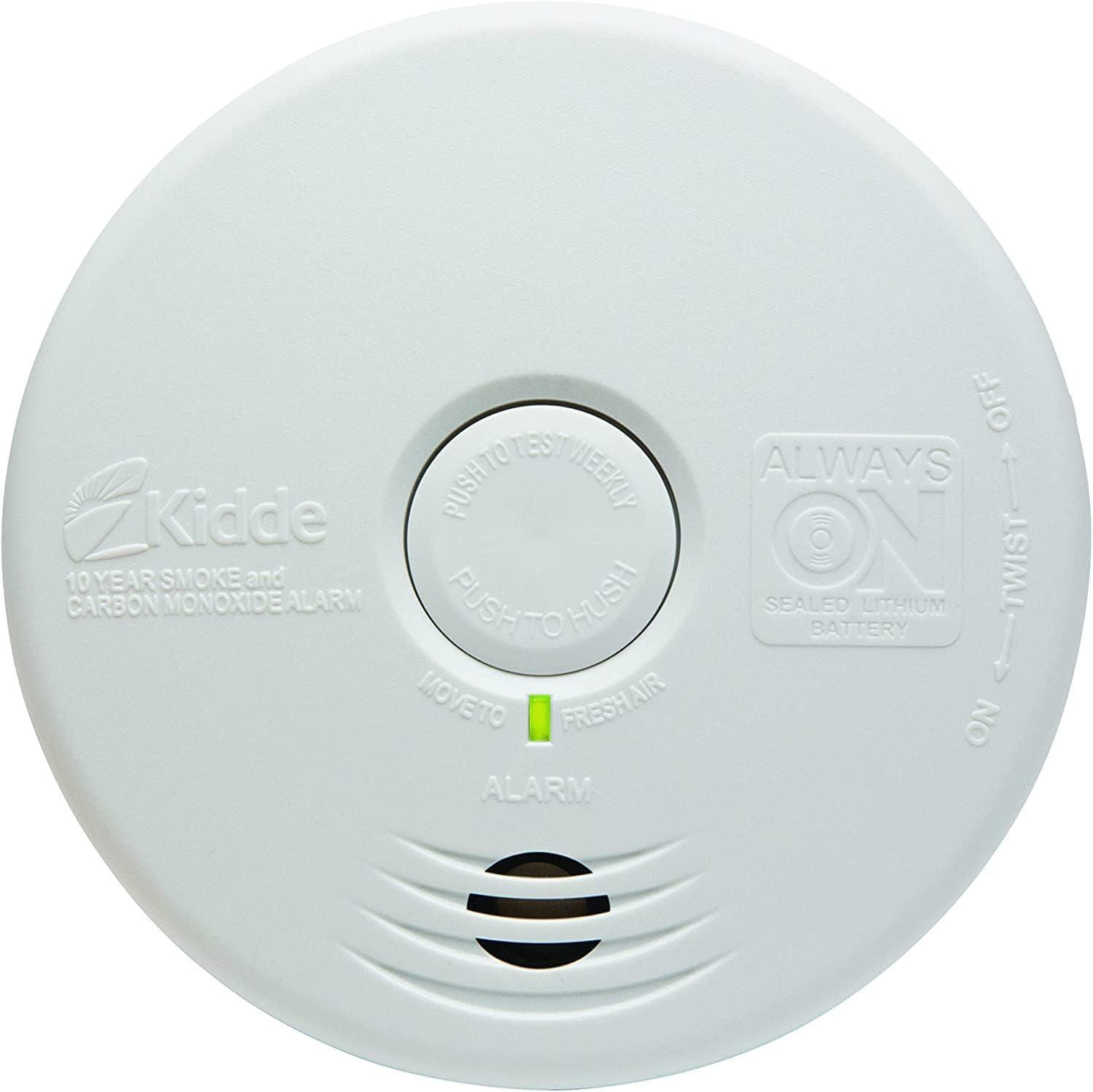 The Kidde Smoke & Carbon Monoxide Detector Combo, 10-Year Battery, Replacement Alert, model P3010K, provides two fire safety detectors in one unit through the use of photoelectric sensing technology that senses visible fire particles, while an electrochemical sensor detects carbon monoxide. When a smoke, fire, or carbon monoxide event occurs, the Kidde fire alarm warns with an 85-decibel alarm sound & a flashing LED. The Kidde combination smoke and carbon monoxide alarm is powered by a 10-year lithium battery, which eliminates the need for battery replacement while providing coverage during a power failure. In the case of a nuisance or a false alarm, the Smart-Hush button silences the unit for approximately 8 minutes, which is helpful when this smoke detector carbon monoxide detector combo sounds from things like routine cooking or shower steam. When installed, the green LED on the alarm will flash every 60 seconds in standby condition, letting you know that the unit has power & is operating correctly. Install a carbon monoxide smoke detector combo on every level of your home and near bedrooms to help keep your family safe. UL Certified with a 10-year limited manufacturer's warranty. Meets requirements of UL 2034, UL217, NFPA72, (chapter 11 2002 edition) The State of California Fire Marshal, NFPA101 (One and two family dwellings) Federal Housing Authority (FHA), Housing and Urban Development (HUD).
