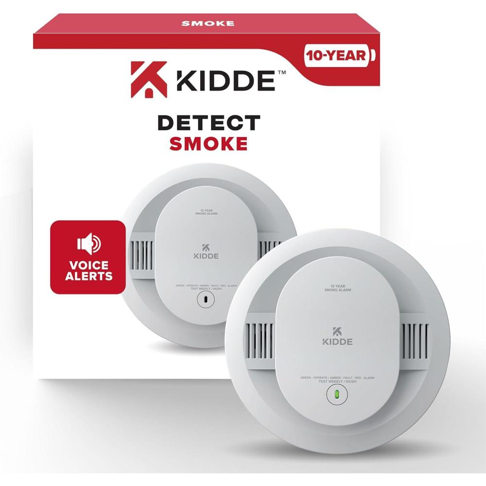 imageKidde Smoke Detector 10Year Battery Powered Voice Alerts LED Warning Light Indicators 20SD10V1 Pack