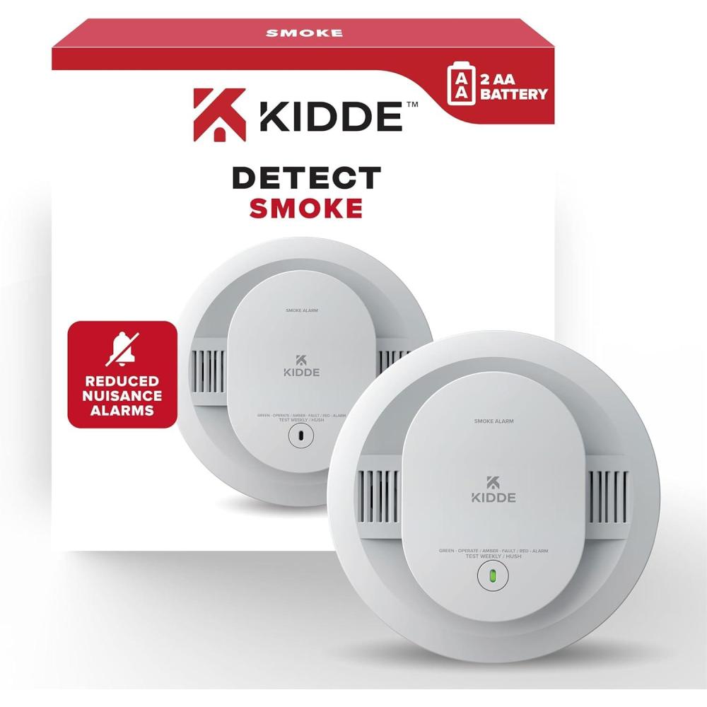 Experience the next level of fire safety with the Kidde Smoke Detector, AA Battery Powered, LED Warning Light Indicators, model 20SDR. This smoke detector has enhanced sensing technology that reduces false alarms often caused by cooking and sends fast alerts that help give your family more time to get out safely. This alarm offers a modern 5-inch design ideal for all living spaces such as living rooms, hallways, kitchens, & bedrooms. Comprehensively tested and designed to the latest UL standard for safety and reliability, the 5-inch smoke alarm is powered by 2 replaceable AA alkaline batteries (included) for continual detection even during outages. Batteries should be replaced every 6 months or when the alarm sounds a low battery chirp. In addition, it’s self-testing and easy to install with the included twist-and-click mounting bracket. This Kidde smoke alarm is equipped with end-of-life notifications that will beep to remind you it’s time to replace it at the of its 10-year lifespan. Meets requirements of 9th Edition UL 217 and FCC. Does not meet requirements for CSFM.